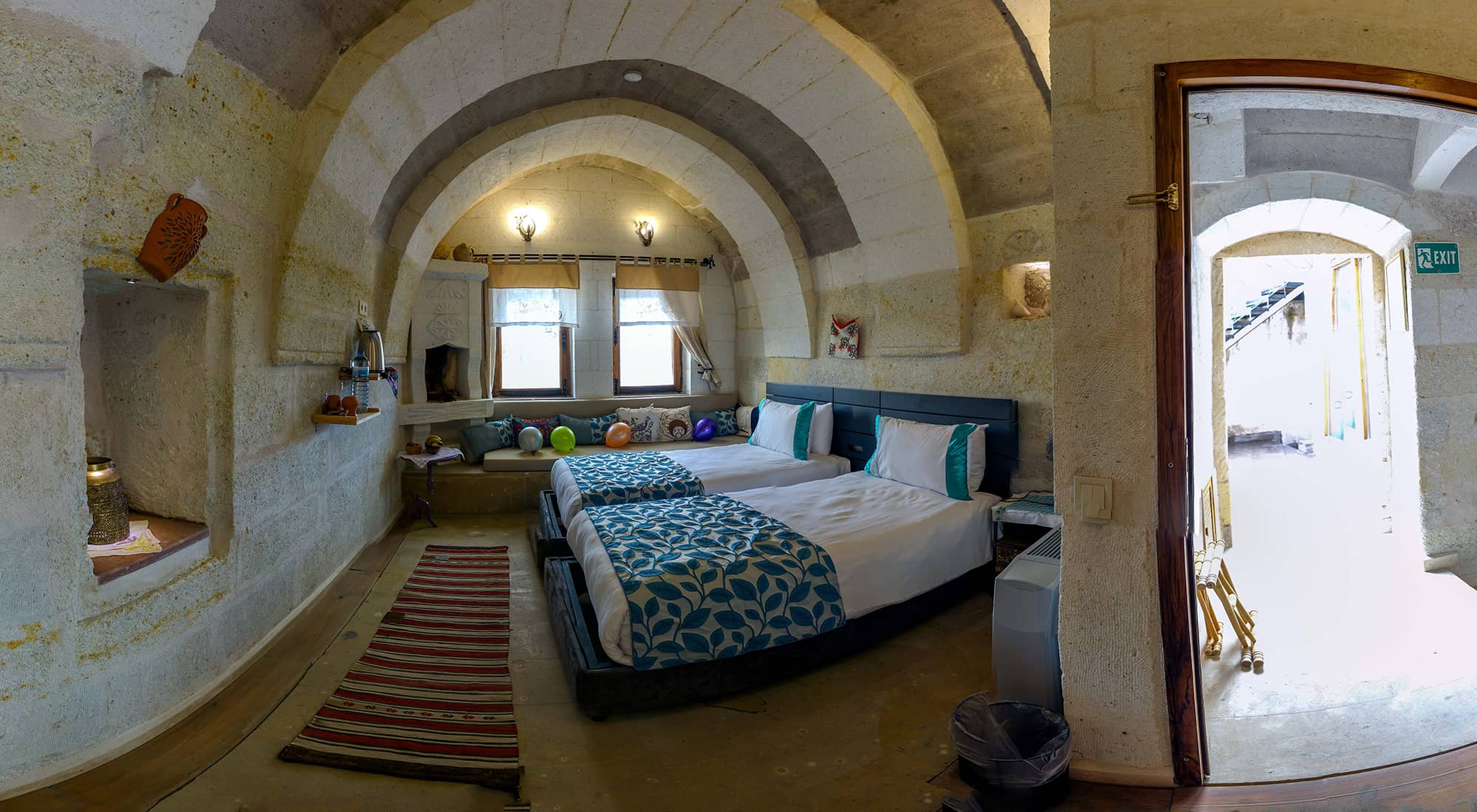 Rüya gibi manzaraya bakan oldukça ferah tas kemer oda. Twin yatakli ruhu aydinlatan bir oda. 18 M2