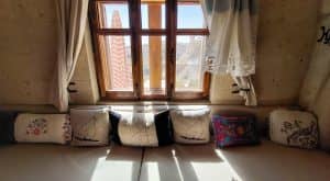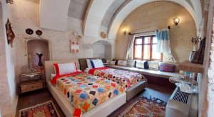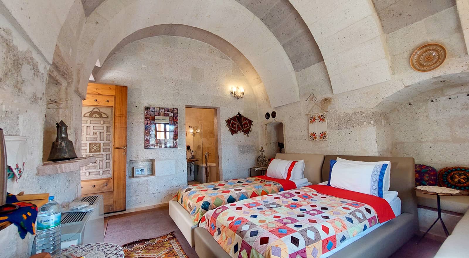 Geleneksel özellikleri bozulmadan restore edilmis odalarimizdan biridir. Güvercinlik vadisi ve Erciyes dagi manzarasina sahiptir. Oda önünde teras bulunmaktadir. orijinal tas sediri ile manzara keyfi yaninda jakuzi keyfide sunan ferah bir odamizdir. 21 M2