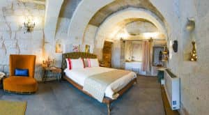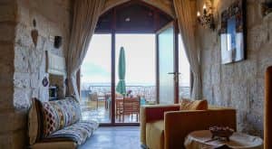Havuz tipi jakuzide güvercinlik vadisi manzarasi esliginde keyifli anlar sunan Büyük kemer tas oda. Büyük kemer penceresi önünde Erciyes dagina karsi kahve keyfi için essiz bir oda.Terasa açilan ikinci kapisi ile muhtesem bir teras keyfi için sizi bekliyor. 32 m2