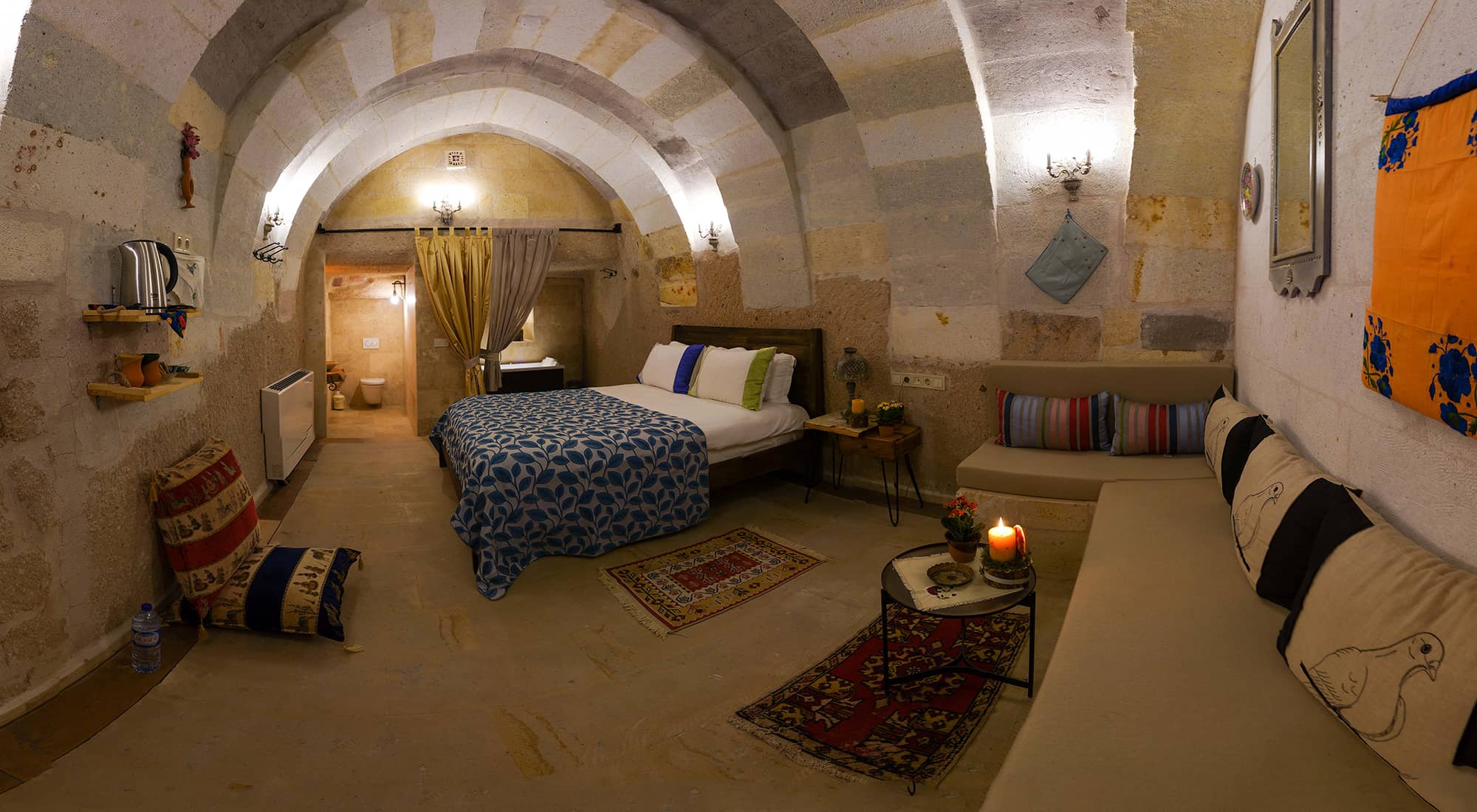 Penceresi olmayan dogal tas kemer oda. bu dogalligin içinde keyifli bir jakuzi imkani sizleri bekliyor. 26 m2