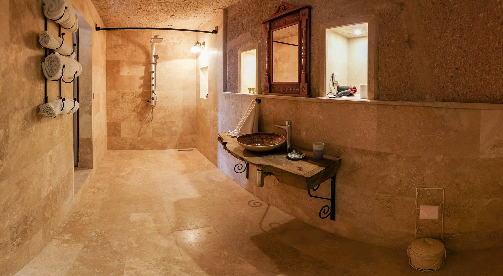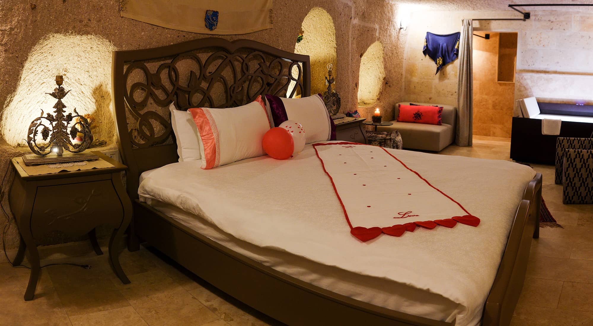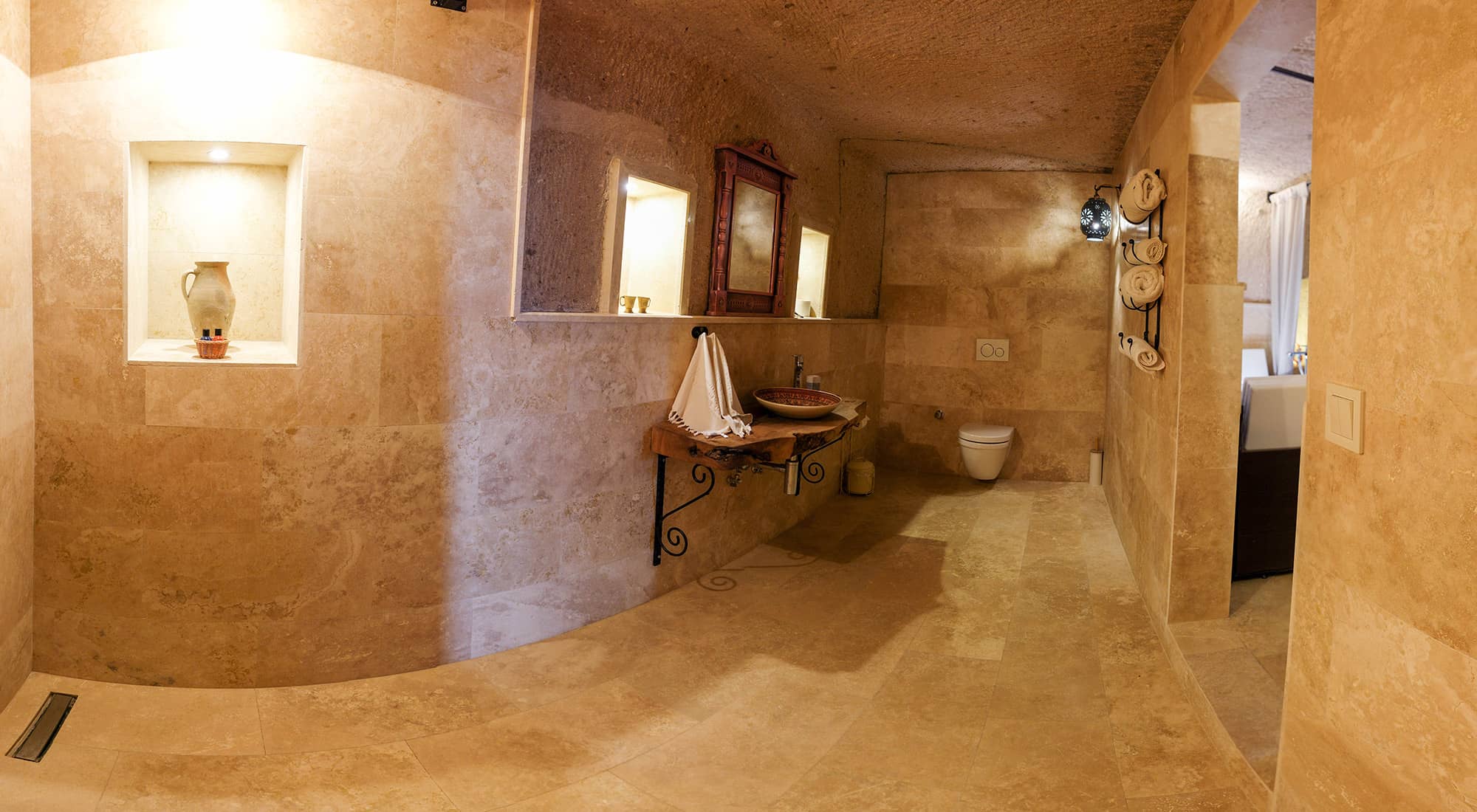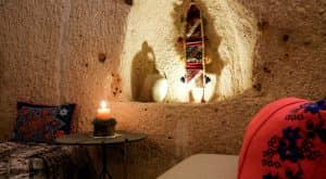 Eskiden tafana (mutfak,sirahane) olarak kullanildigi dogal magara odamiz. Bu otantik mekanin içinde havuz tipi jakuzisi ile size konfor sunuyor. Mekanin içinde yer alan nisler orjinal hali ile korunmustur. 24 m2