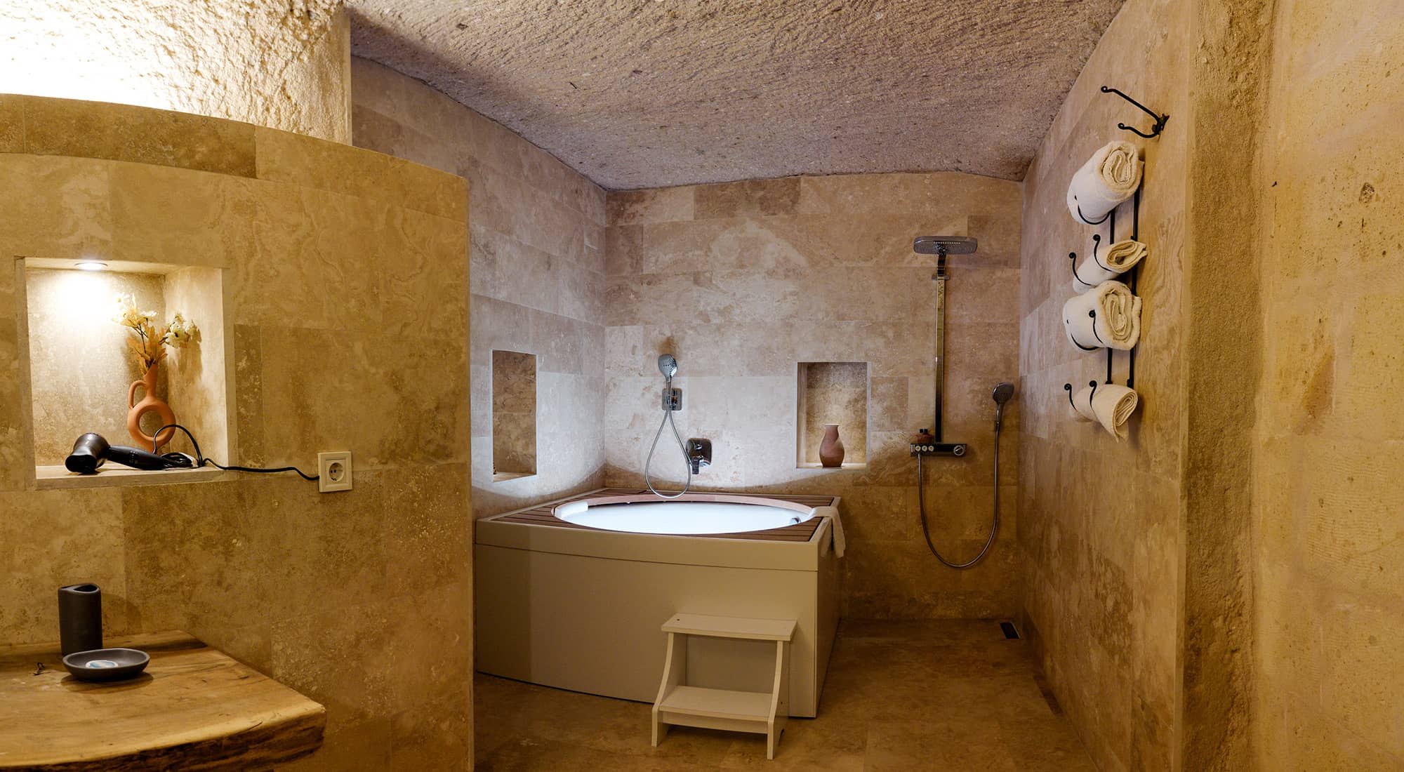 Eskinin samanligi olan doğal mağara oda. Farkli jakuzisi, kendine has nişleri ile rüya gibi bir oda. Gerektiginde yatak ilave edilebilir. Odamizda çay kahve yapilabilecek düzenek mevcuttur. Hergün ücretsiz su odada bulunmaktadir. Bornoz, havlu, terlik sampuan, sabun ve saç kurutma makinesi bulunmaktadir. Odamız balayı odası olarak hazırlanmaktadır. 36 M2