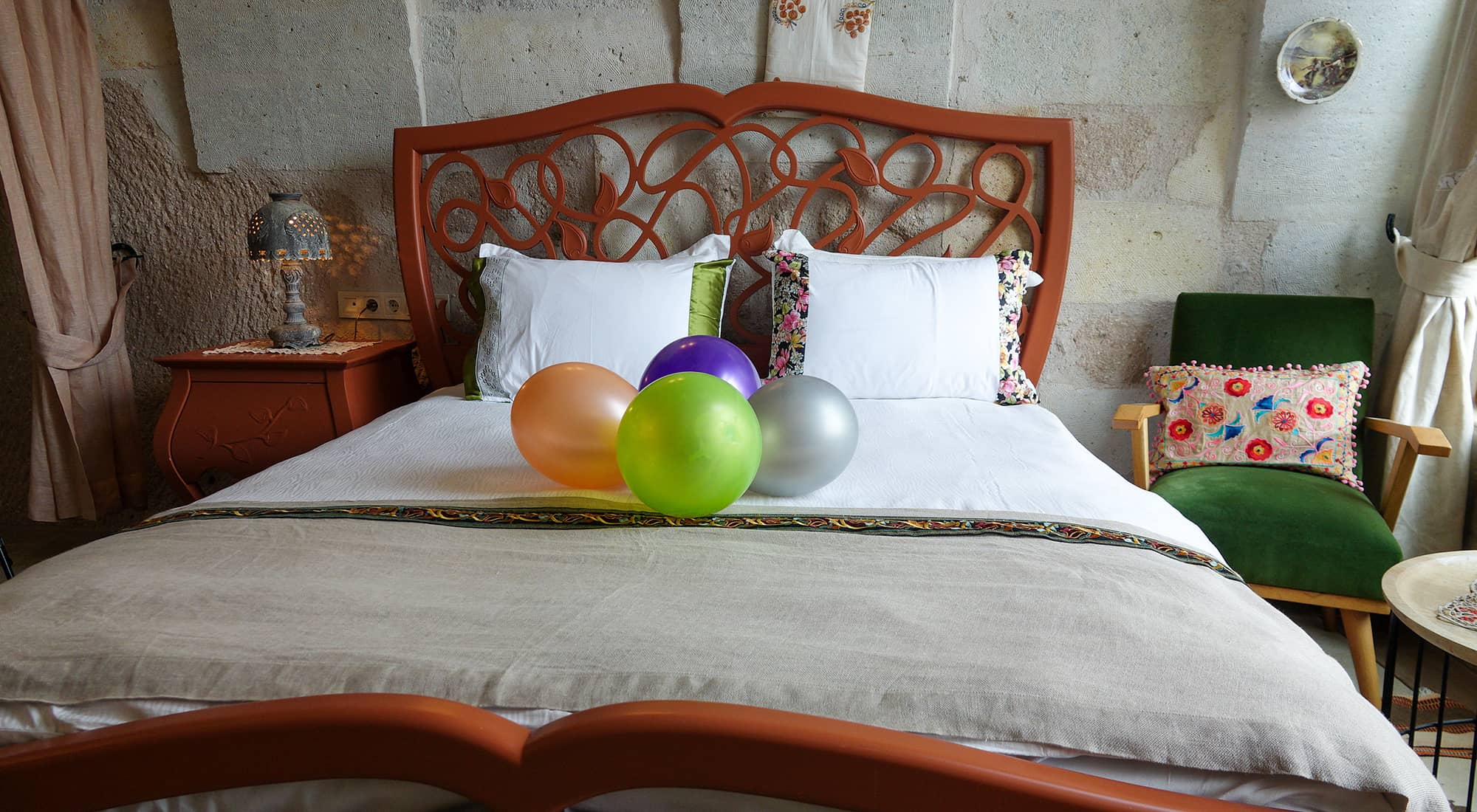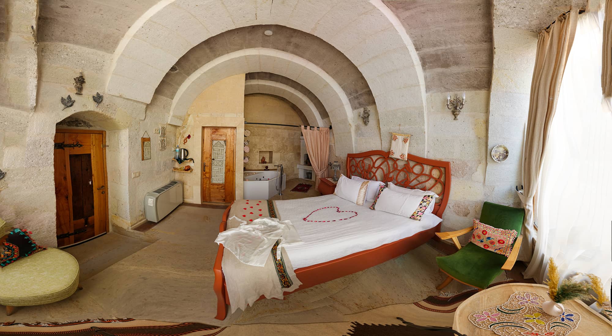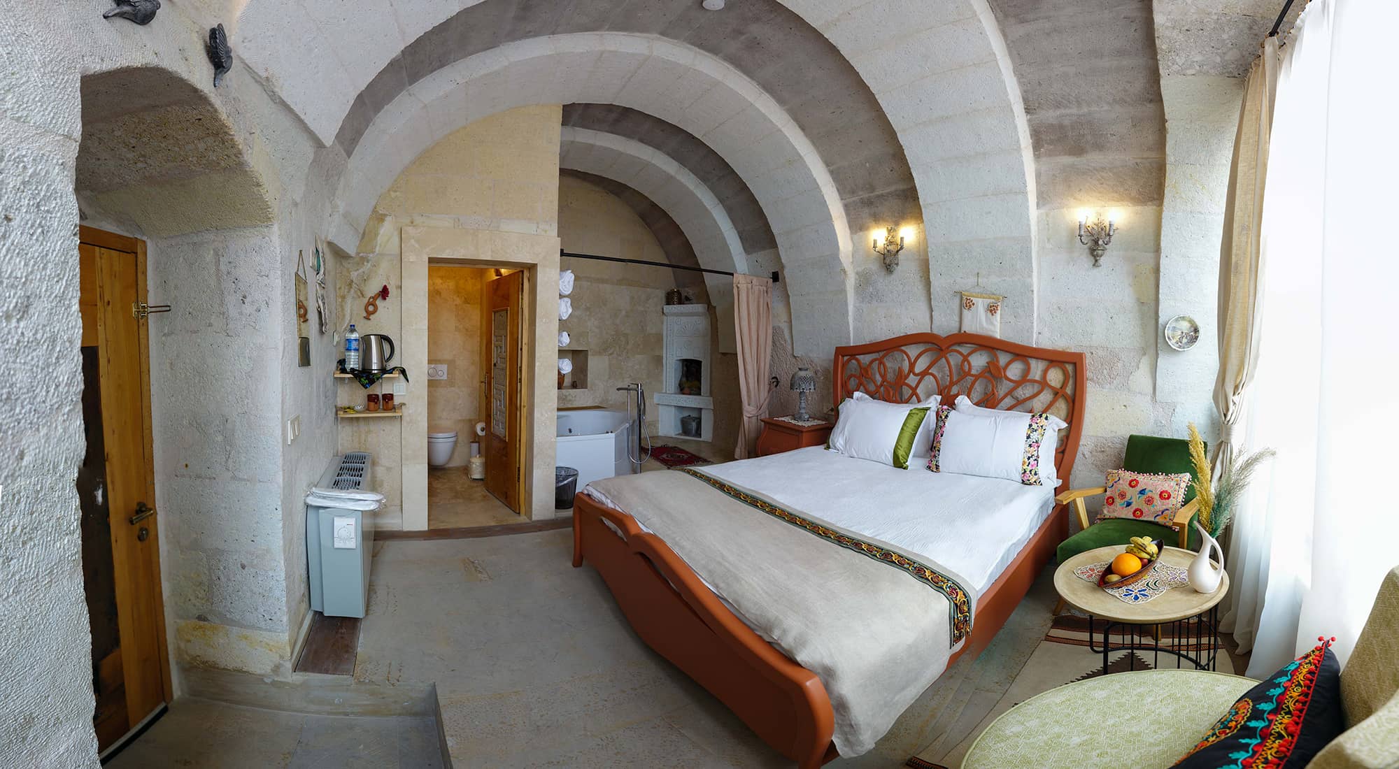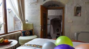 Yapinin tarihi kisminda yer alan odanin orijinal hali korunmustur. Erciyes dagi ve Güvercinlik vadisi manzarasina sahip keyifli sicak bir oda. Manzaraya karsi keyif mekani olarak düzenlenmistir. hem manzara hemde jakuzi keyfinin bir arada oldugu odamız istendiğinde balayı odası olarak hazırlanmaktadır. Odamızda saç kurutma makinesi çay kahve yapma düzeneği, terlik, havlu, şampuan, sabun, su ücretsiz olarak sunulmaktadır. 24M2